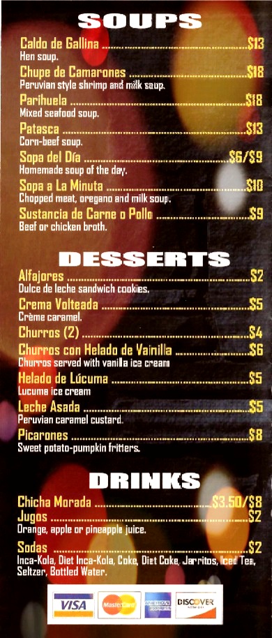 Guests have praised the generous portions and the warm, inviting atmosphere, making it ideal for casual lunches or special gatherings. The ceviche, highly recommended by patrons, showcases the restaurant's dedication to using fresh ingredients paired with authentic recipes. Complement your meal with their refreshing juices or signature Chicha morada.